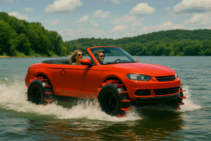 ARWIMS retractable paddle wheels let you drive on water and land, in the same car - even in evening wear. | |