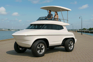 ARWIMS retractable paddle wheels let you drive on water and land, no anchor (or drink) required. | |