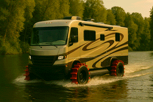 River in the way? No detour needed. This luxury camper cruises right through, enjoying the view on the go. | ||