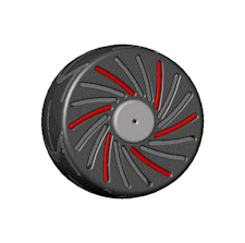 Blades remain fully retracted at all times when the wheel is rolling on hard surfaces, thanks to their constant contact with the ground. |